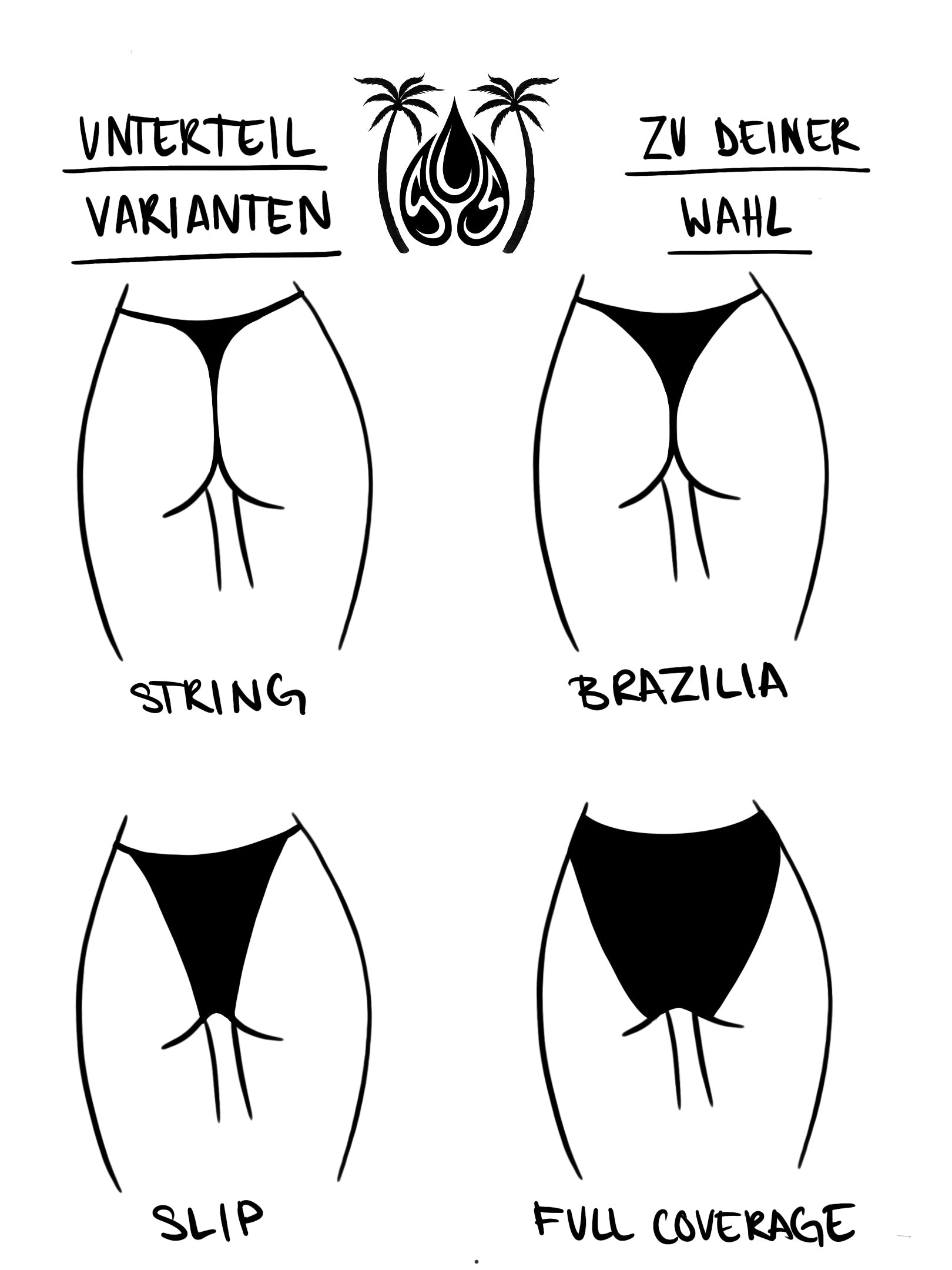 Bei jedem Bikini Unterteil habt ihr die Wahl welche Bedeckungsvariante Ihr euch dazu wünscht.